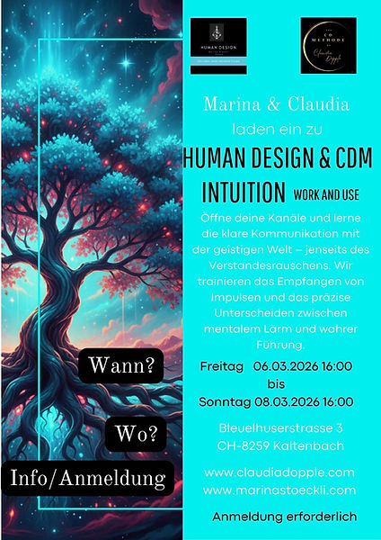 In diesem besonderen Seminar verbinden wir das tiefe Wissen über deine energetische Baupause – dein Human Design – mit der praktischen Anwendung der CDM-Methode. Gemeinsam mit Marina Stöckli schaffe ich einen Raum, in dem du lernst, den mentalen Lärm des Alltags hinter dir zu lassen und deine Kanäle für die klare Kommunikation mit der geistigen Welt zu öffnen.